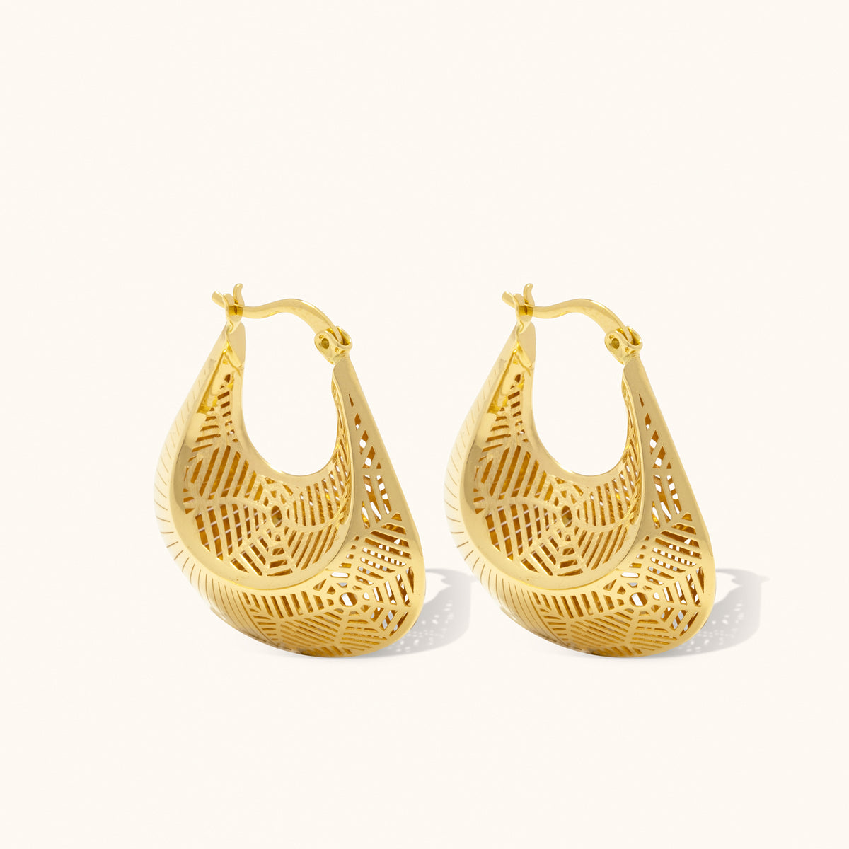 The universe whispers in every moment, and the Cosmic Universe Hoops echo its brilliance. Handcrafted from solid gold, these U-shaped beauties dance with intricate, celestial patterns, capturing the vast tapestry of stars above.