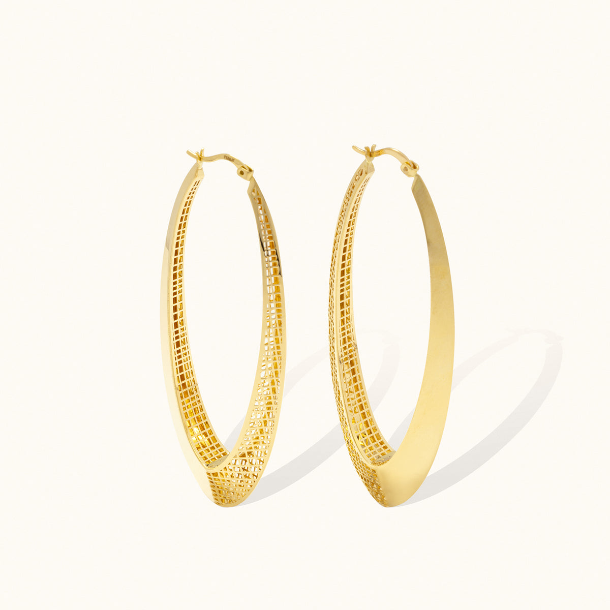 Matrix Big Hoop Earrings are crafted to reflect the uniqueness of each moment. Made from solid gold, these earrings are designed with a striking lattice pattern, reminiscent of interconnected paths—each line representing a story, a memory, or a dream yet to unfold. The sleek hoop design complements this intricate detail, offering a timeless elegance that evolves with you.