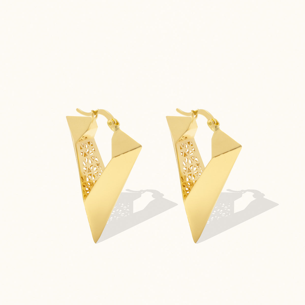 Introducing V-Shaped Floral Hoop Earrings, handcrafted with exquisite detail in solid gold. These earrings feature a delicate floral motif, gracefully arranged in a V-shaped hoop design.