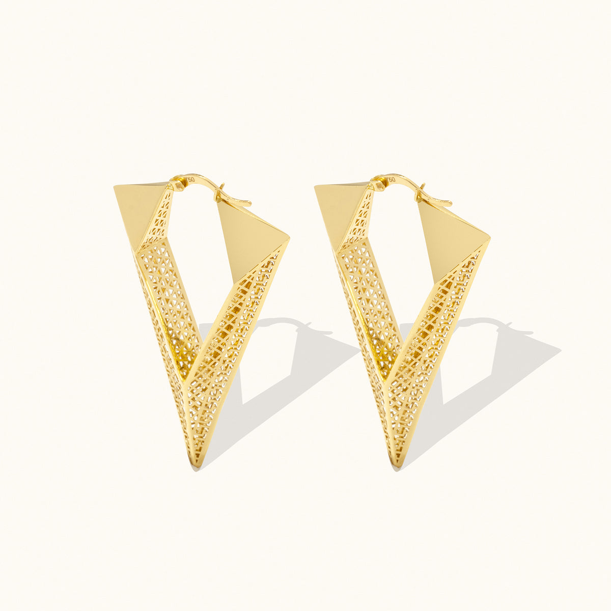V-Shaped Geometric Patterned Prism Hoop Earrings